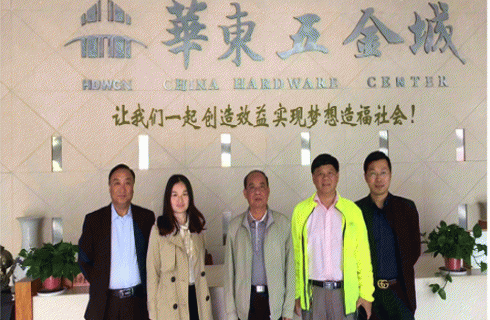 2019年3月27日上午,浙江省臺州市椒江區委常委統戰部部長(cháng)蔡士榮、工商聯(lián)書(shū)記何仙斌等一行來(lái)到華東五金城管理有限公司參觀(guān)考察,華東五金城副總經(jīng)理王德干對蔡常委等領(lǐng)導的到來(lái)表示熱烈的歡迎。華東五金城副總